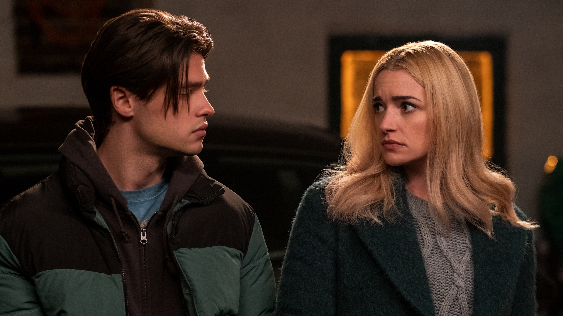 Taking a page from Euphoria's book in a mash-up of two bingeable shows, Ginny (played by Antonia Gentry) also rocks a kind of 90s grunge-inspired look. We were particularly enamored with her leather jacket, a high schooler's staple.