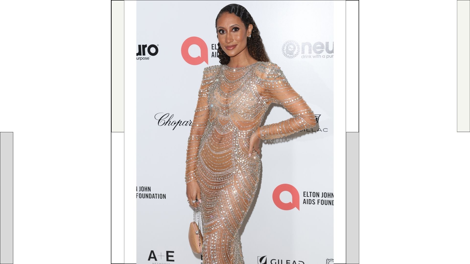 Teen Vogue's editor in chief rocked this crystal embellished dress to the Elton John AIDS Foundation's 31st annual academy awards viewing party on March 12, 2023, pairing it with diamond earrings, silver rings a small peach mini bag—great inspo if you're wondering how to style your own sheer number!